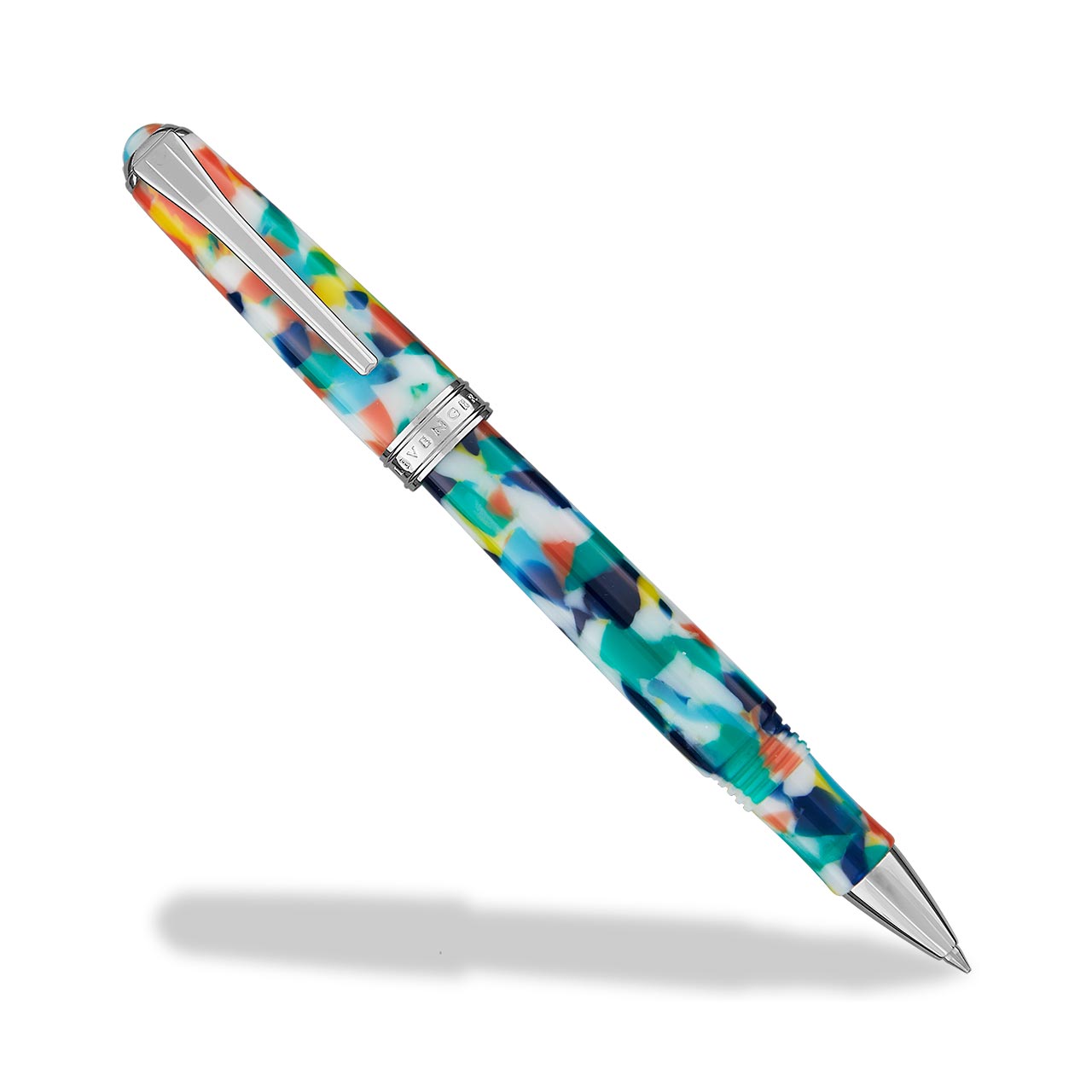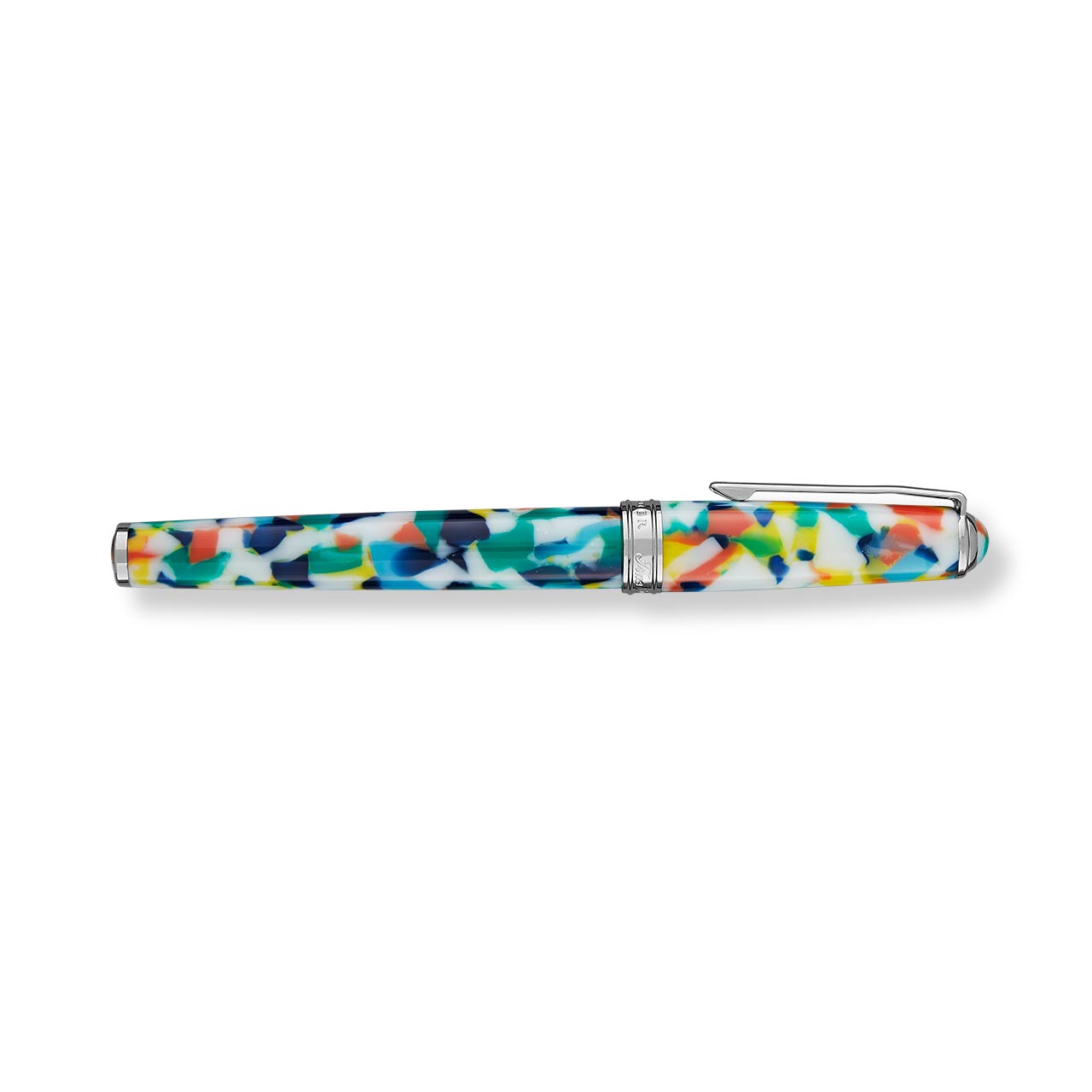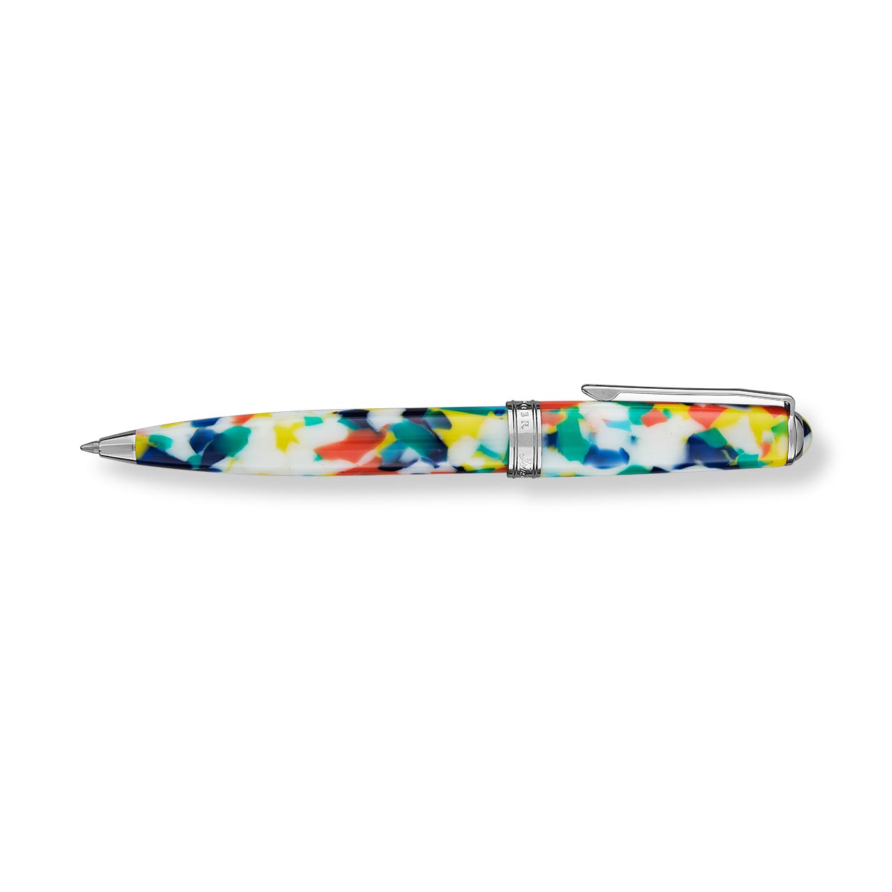 Add a little joie de vivre to everyday writing. The True Writer Classic Confetti Pen is designed for those who find joy in the details—and believe writing should always feel a bit like a celebration. The brightly speckled multicolored resin barrel is framed by gleaming chrome trim and appointments to give it a polished finishing touch. As always, this True Writer Classic pen is perfectly weighted and balanced for a comfortable writing experience. Make it yours with a 3-initial monogram or full name of up to 16 characters.