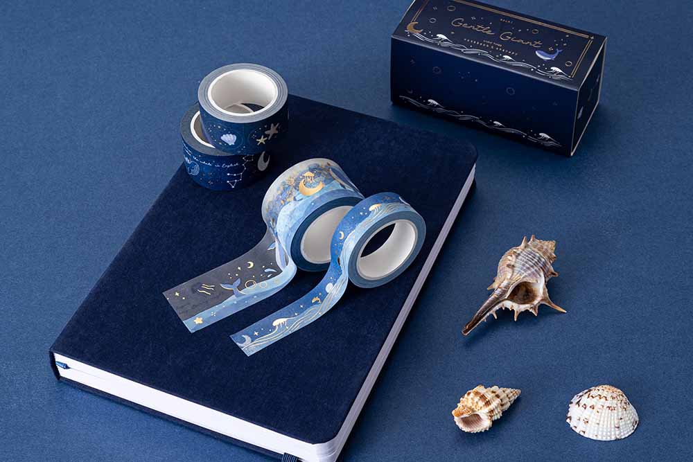 Now a part of our , it’s a staple in our much-loved 160GSM dot grid notebook series! Inspired by the blue whale, our team have created a shining pearl gold foil design to bring this magnificent marine mammal to life! Wrapped in a deep blue soft velvet cover reminiscent of the depths of our wonderful ocean. Enjoy this calming midnight blue aesthetic across our entire , or with our matching in our limited edition Gentle Giant bundle!