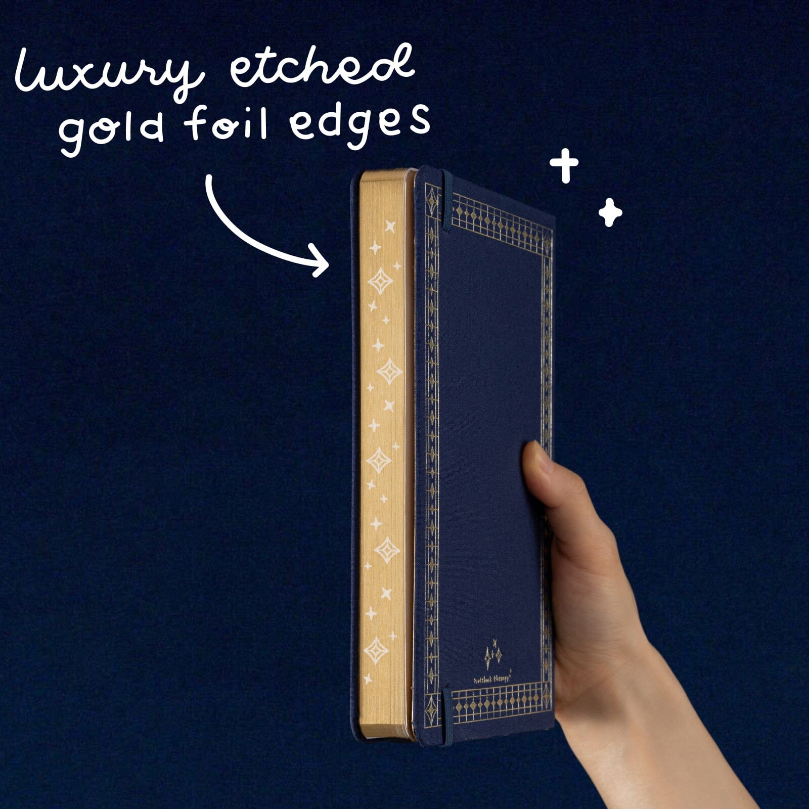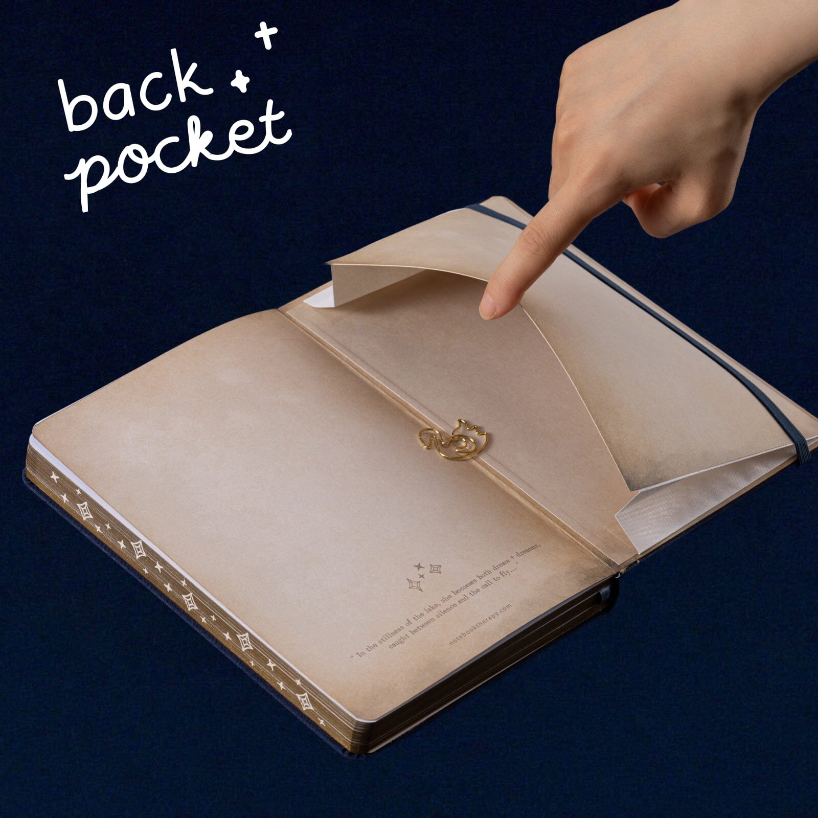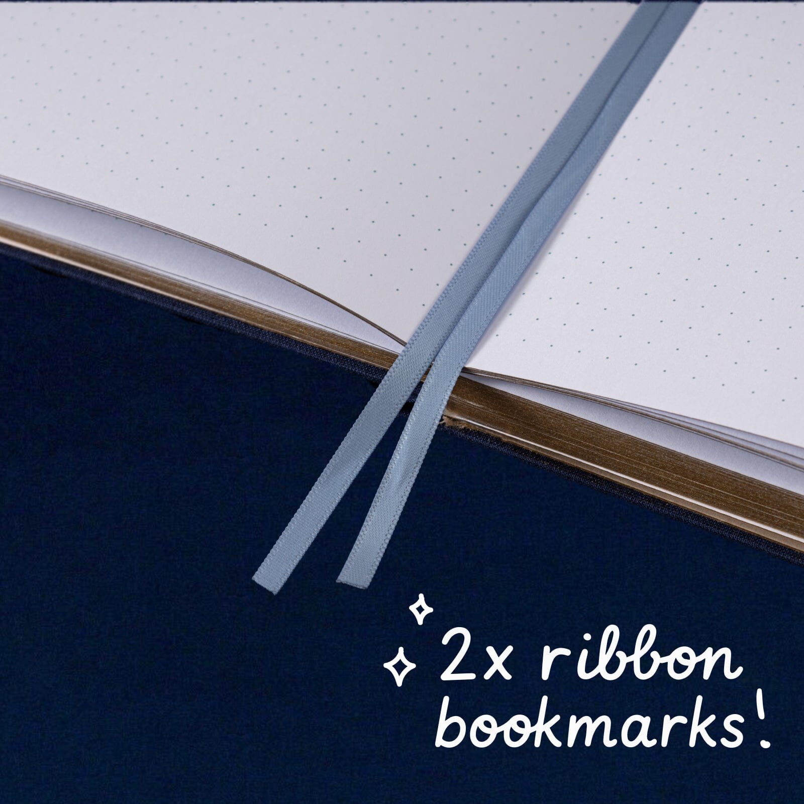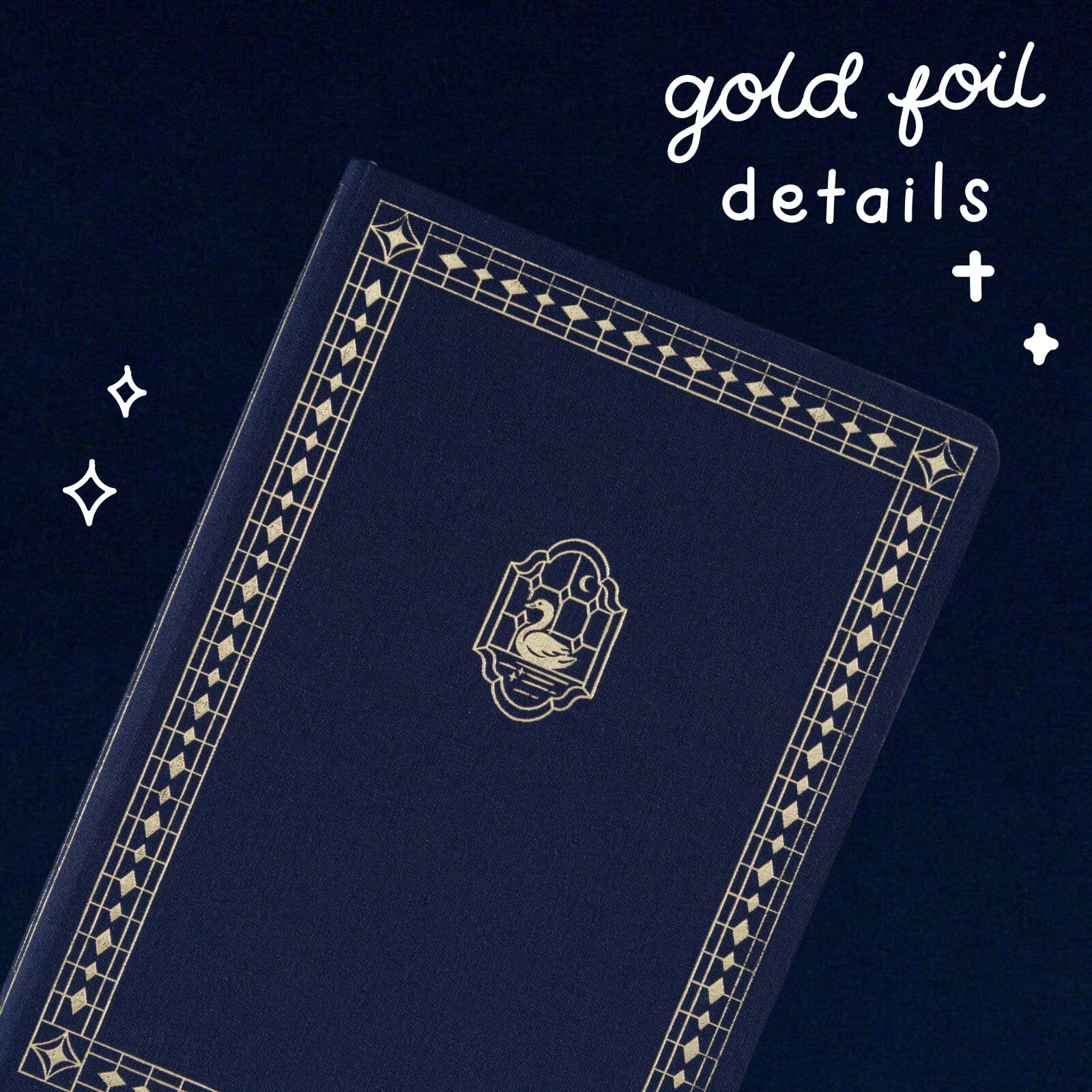 Part of our special , inspired by magical swans and the beautiful fairytale ‘Swan Lake’. This magical addition to the beloved Tsuki Collection of 160GSM dot grid notebooks showcases a beautiful swan design with a vintage fairytale border in pearl gold foil on a deep navy blue linen featuring a special anniversary inner cover, hoping to bring you more magic as you manifest in your journal.