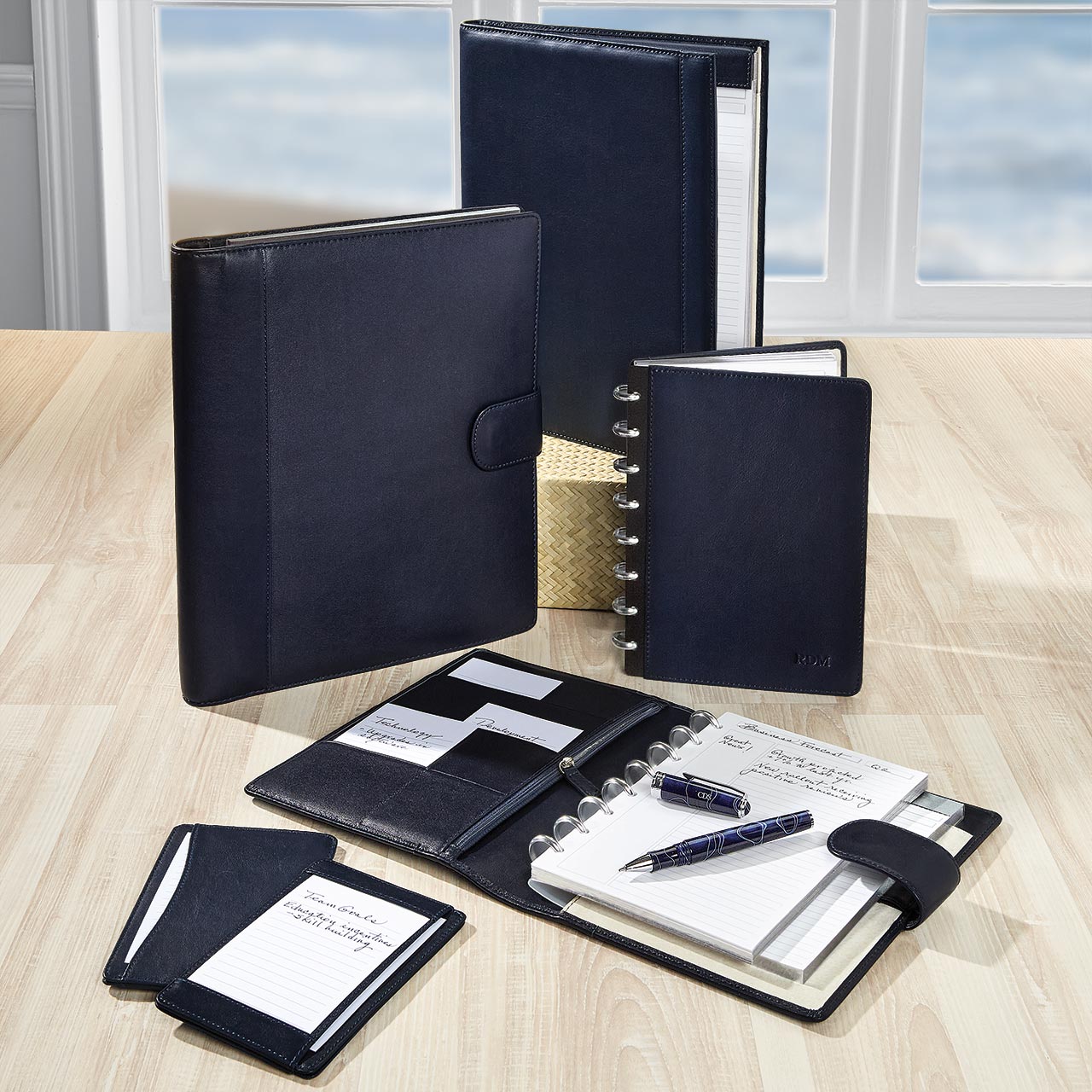 A Levenger classic since 1992, now in luxe midnight blue leather. Even in this digital age, it's nice to be able to take on-the-go notes to keep and to share. The Pocket Briefcase® is our pocket-size, full-grain leather notepad with a 3 x 5 card writing platform, plus two pockets to keep fresh and completed cards separate. Give it a personal touch with the optional monogram.