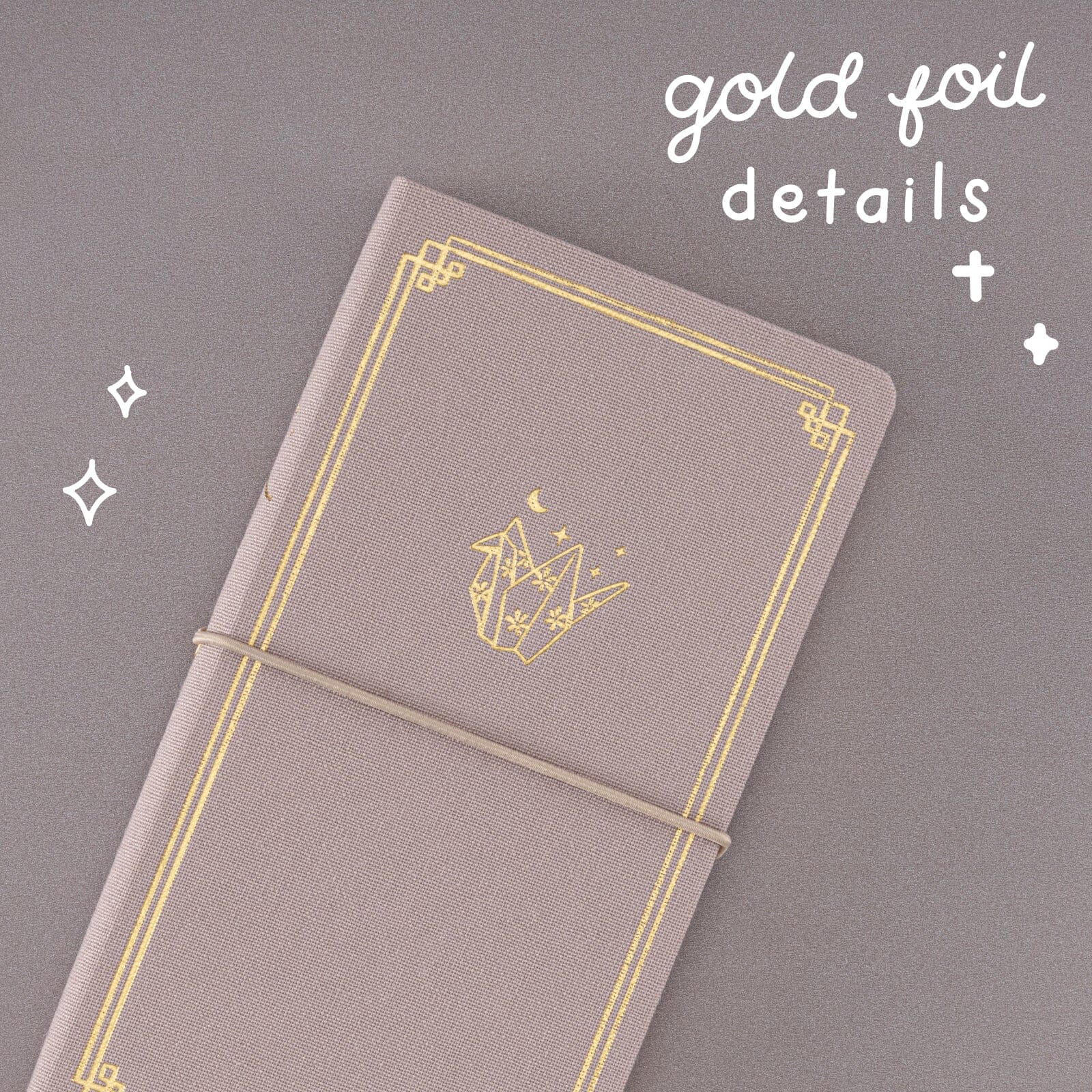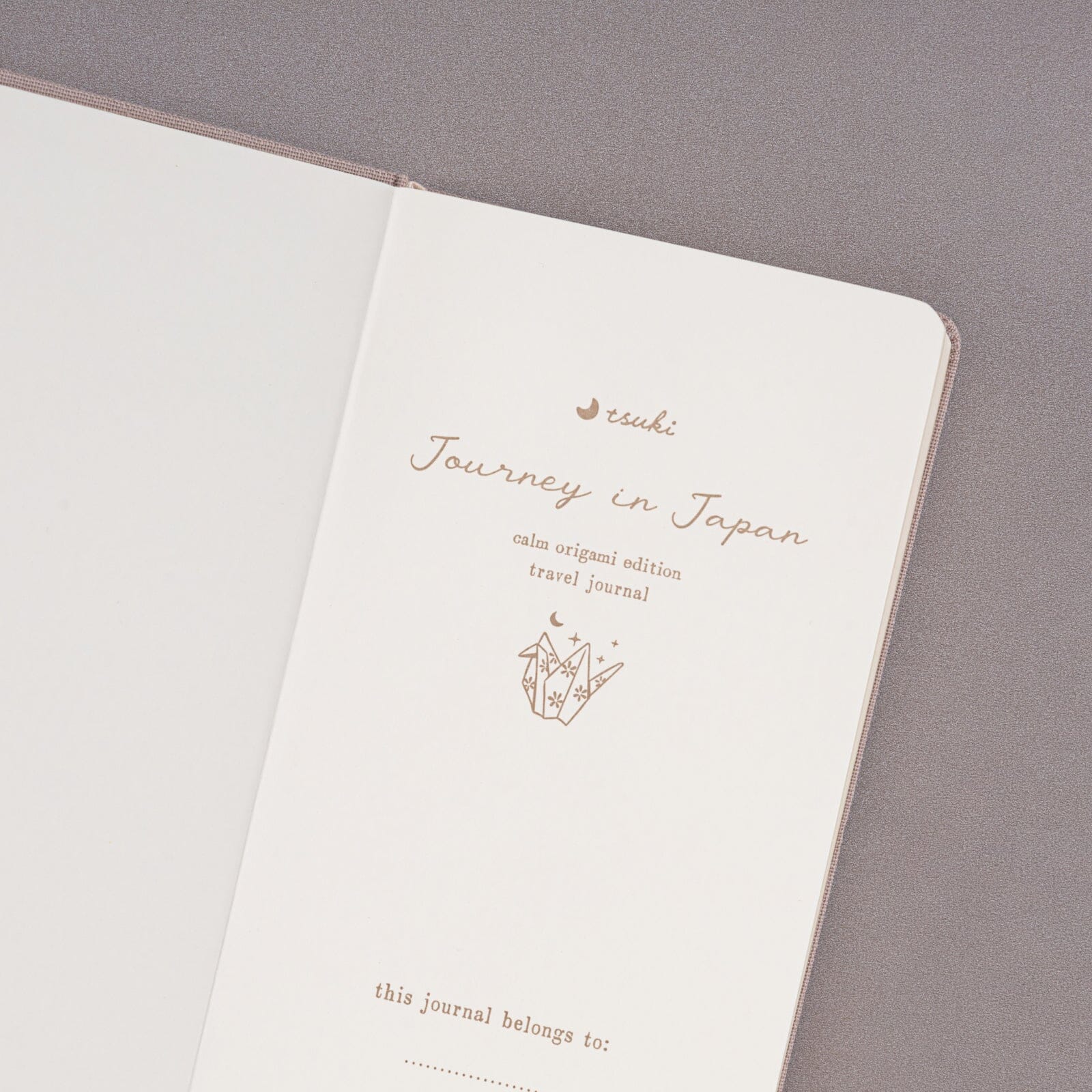 Embrace the calm and luck a paper-crane brings, with our Tsuki ‘Calm Origami’ Travel Notebook! This beautifully designed notebook features a soft lilac linen cover with elegant matte gold foil details, showcasing an origami paper crane design with a delicate crescent moon. Perfect for capturing your thoughts, dreams, and travel memories under the glow of moonlight.