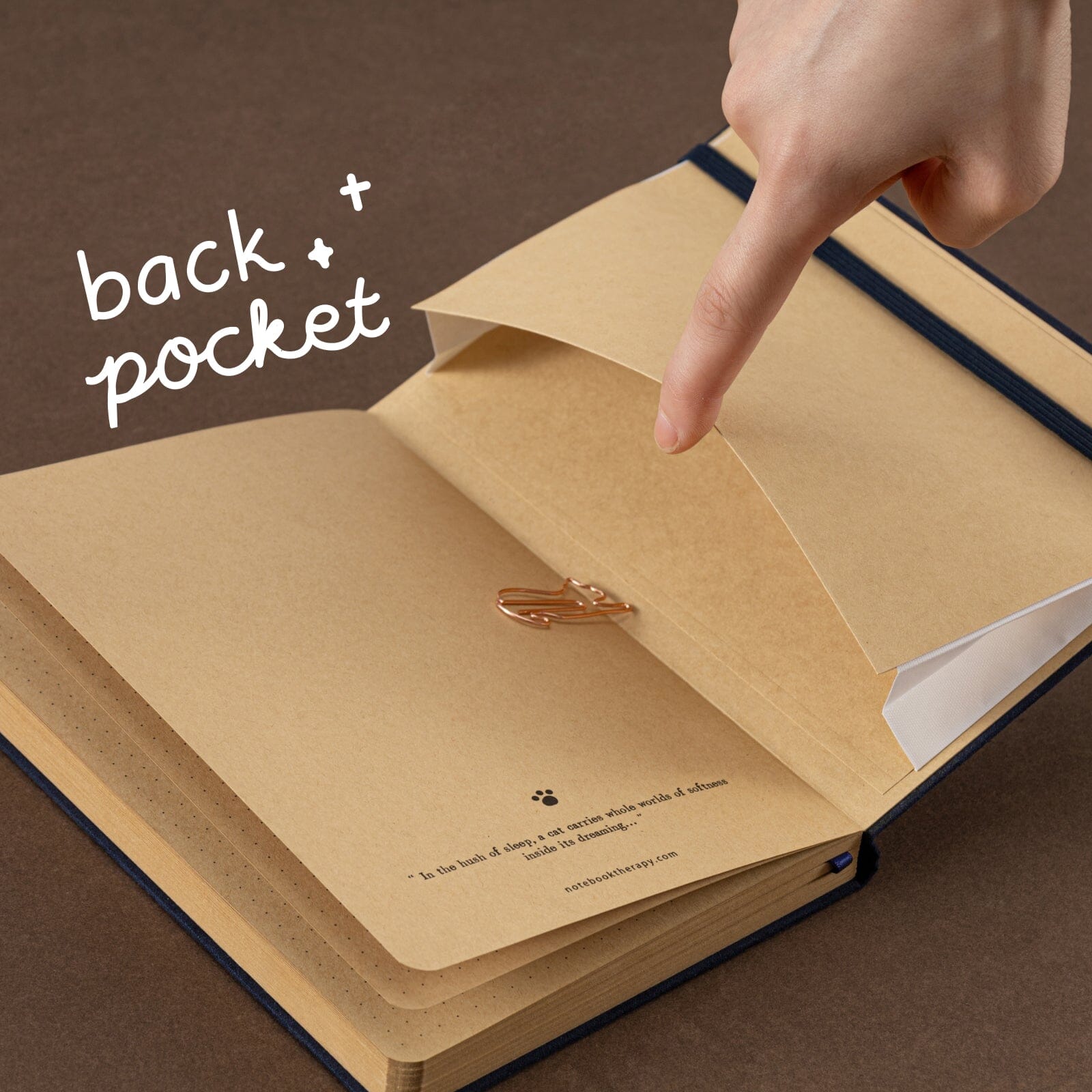 • Back storage pocket, with free cat paperclip gift + elastic band closure