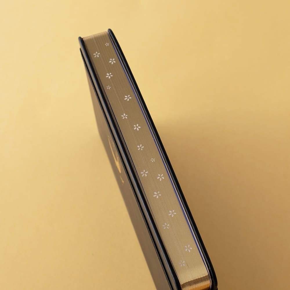 Inspired by the heavenly Moonflower that blooms only at night; our Tsuki MoonFlower Bullet Journal brings together smooth black vegan leather + beautiful floral etched metallic gold page edges to this luxury limited edition design. This latest addition to our collection of Tsuki 160GSM dot grid notebooks brings a never before seen aesthetic opulence to your bullet journal experience and is now part of our new !