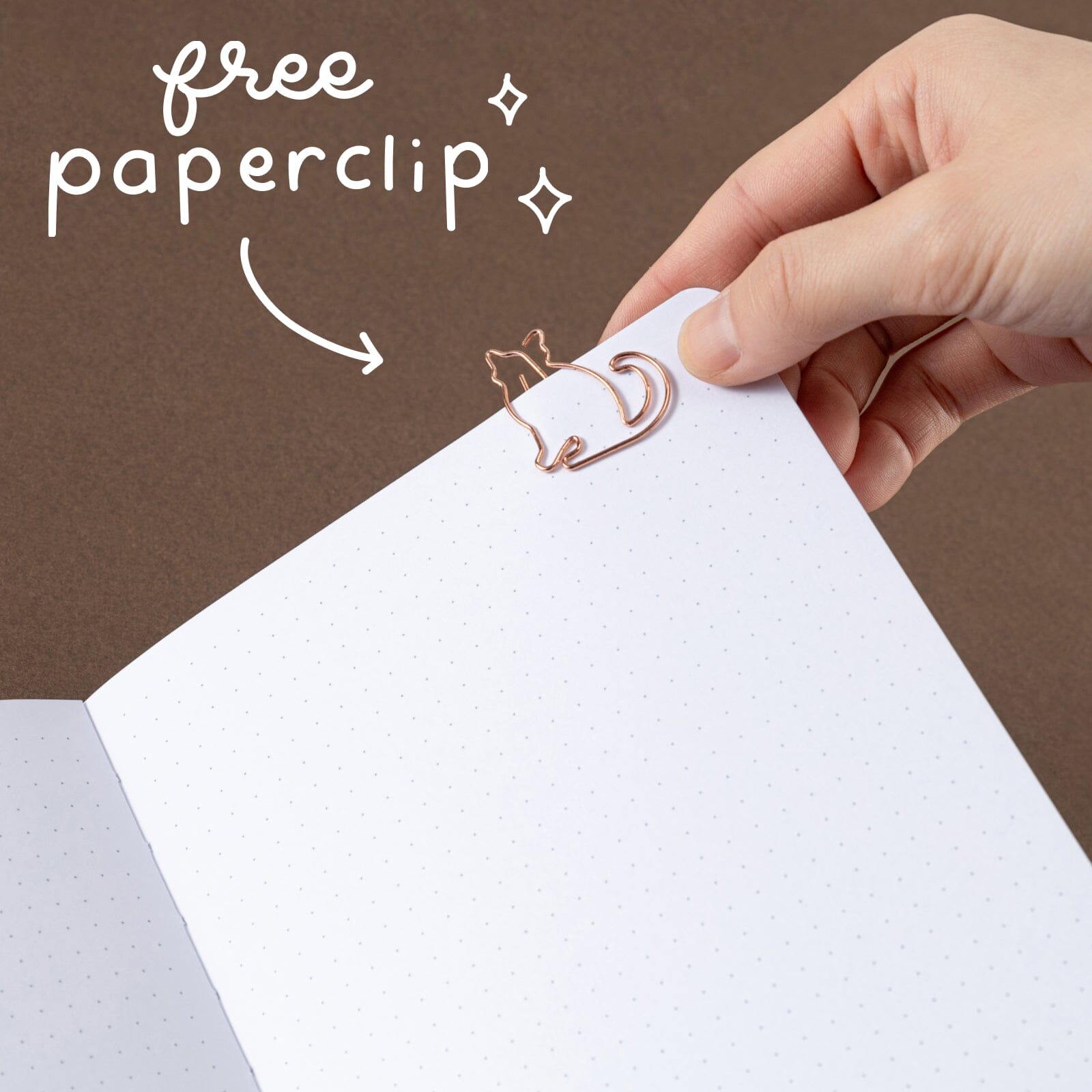 Free rose gold cat-shaped paper clip included with the Tsuki Neko Dreams Sleepy Neko Notebook.