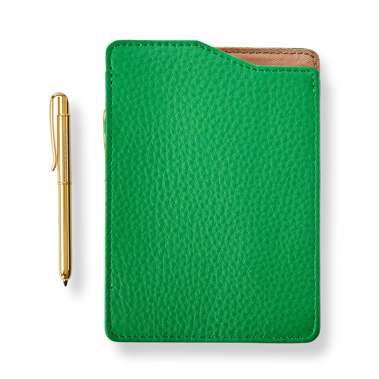 Crafted in our premium pebbled full-grain leather, this enhanced and expanded version of our Pocket Briefcase® has a pen sleeve and includes our gold Walletini Pen. The outside pocket of this leather 3 x 5 card holder lets you jot on-the-go notes. The larger interior pocket dispenses fresh cards.