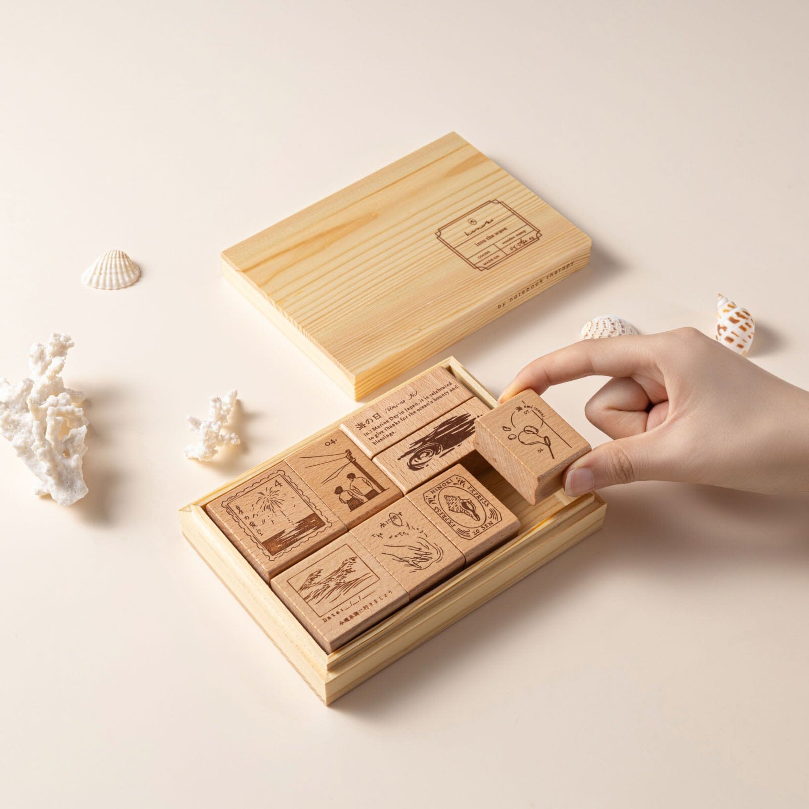 • Material: 8 luxury wood stamps made with beech wood from New Zealand